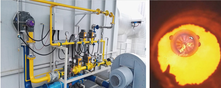 • 燃烧器天然气能量属于无极调速,可以非常方便的控制炉膛温度。