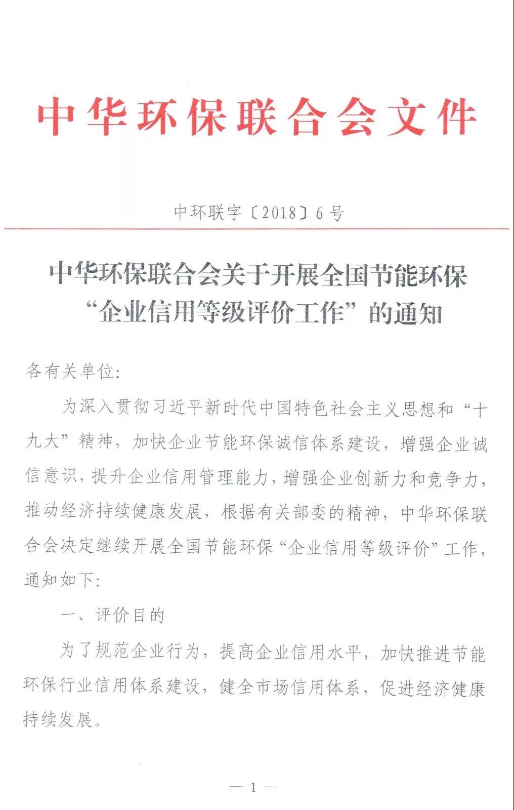 为提升企业信用管理能力,中华环保联合会根据有关部委的精神,开展全国节能环保“企业信用等级评价”工作。